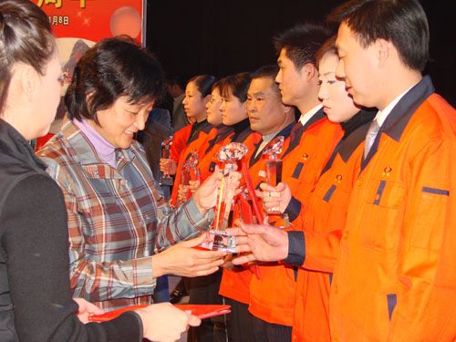 濟寧市政協(xié)副主席?;萏m女士到場為我公司“十年貢獻”一等獎獲得者頒獎