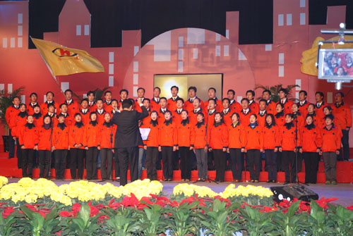 華珠公司合唱團全體人員,市歌舞團全體演員共同演唱《感恩的心》,聯(lián)歡會落下帷幕